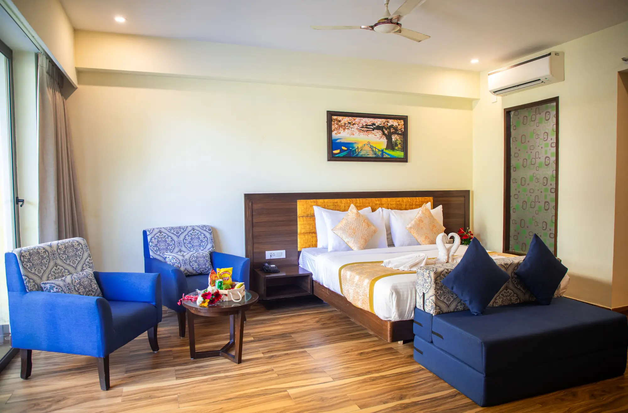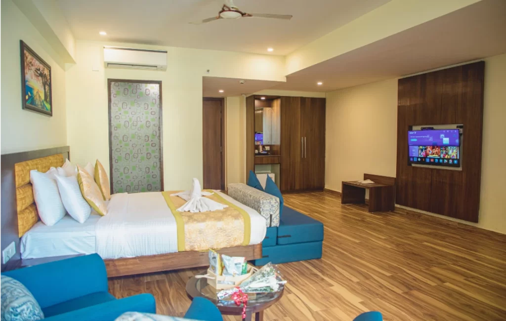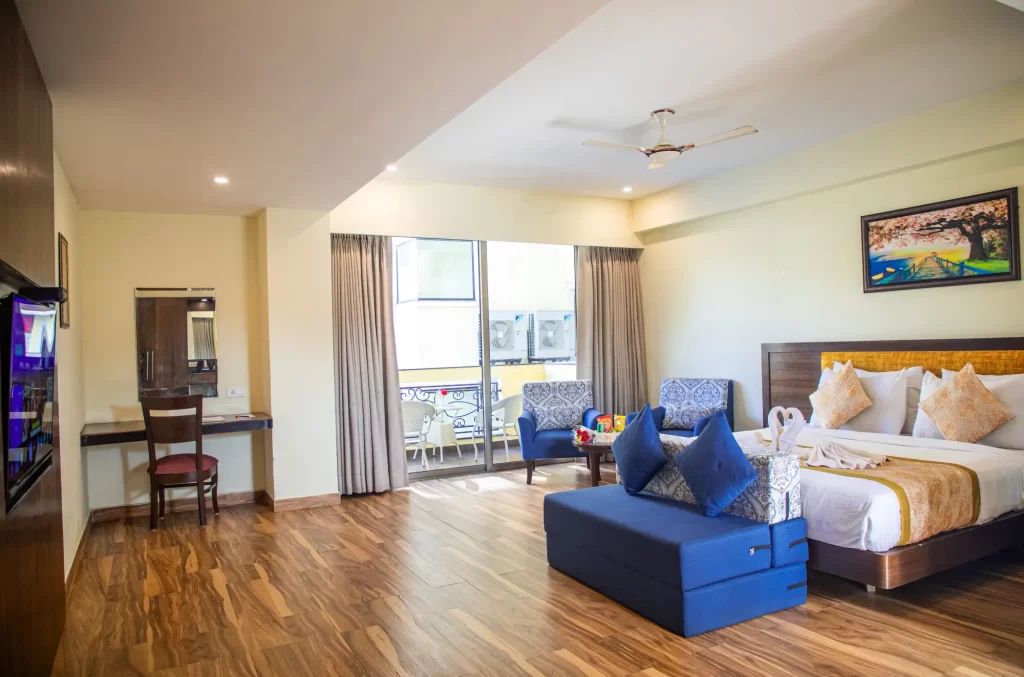 The most expansive, lavish, and attractive rooms are royal rooms because they make you feel unique. Each royal room has 450 square feet and is furnished with all contemporary in-room conveniences, including a mini-bar, TV, air conditioning, WiFi, storage, a mineral water dispenser, toiletries, a hair dryer, an iron, and a 24-hour backup system. Extended private balcony with stunning views is an any time gateway to feel royal and you can enjoy sipping your favourite coffee or chug a beer.